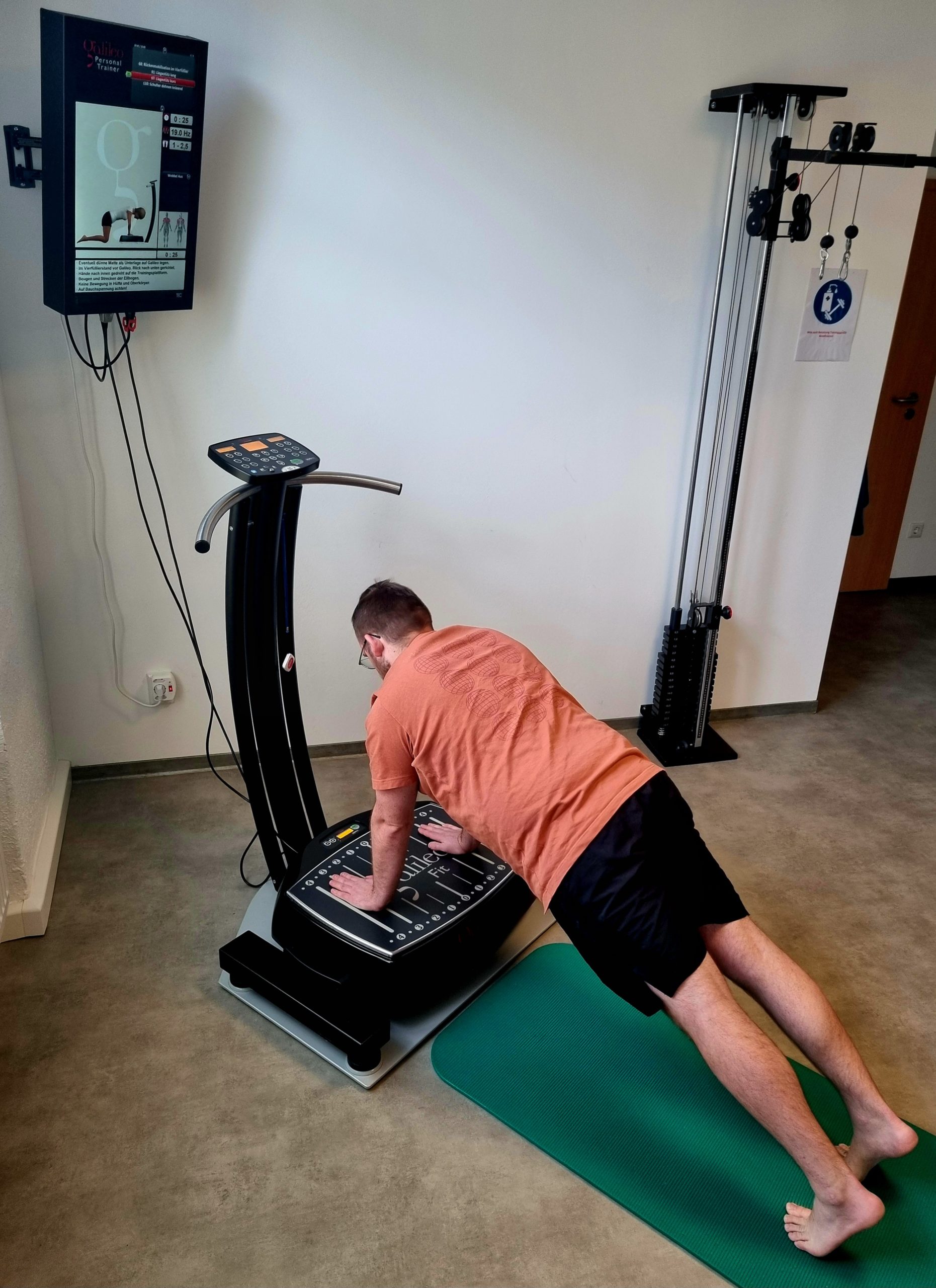 Der Galileo ist eine hochwertige Vibrationsplatte, die wie eine Wippe funktioniert und den natürlichen Bewegungsablauf beim Gehen nachempfindet. Es wird die Muskulatur von den Beinen bis hoch in den ganzen Körper aktiviert. Das Training wird individuell nach Ihren Zielen zusammengestellt. Die Übungen werden auf einer Karte gespeichert.